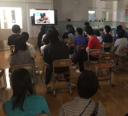みんなで大型テレビの映像に釘付けです!!