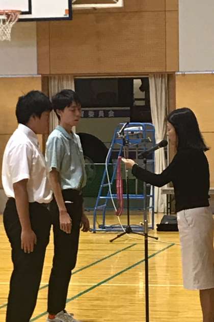 後期始業式の後,児童生徒集会で表彰式が行われました。