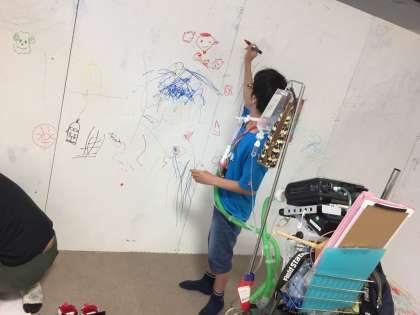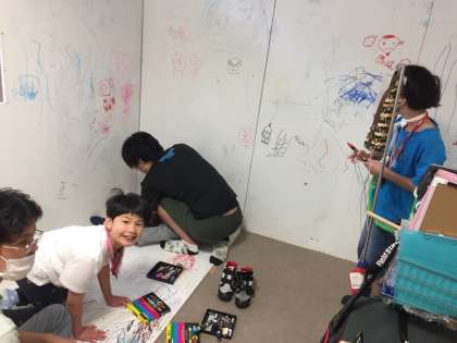 大きなキャンパスに,子どもたちが自由に伸び伸びと線や絵を描いています。さて,どんな家が出来上がるのでしょうか。ご来校の折に,ぜひのぞいてみてください。