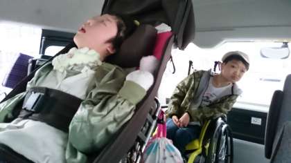 福祉タクシーの窓からもスカイツリーが見えて喜んでいます。