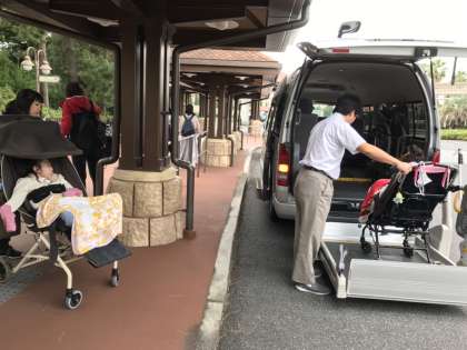1泊2日で帰る生徒は予定通り活動を終え,福祉タクシーに乗って出発します。