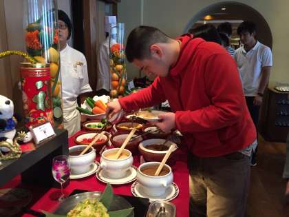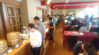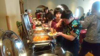 中華のビュッフェ…好きなものを選んでお皿に盛りつけてます。