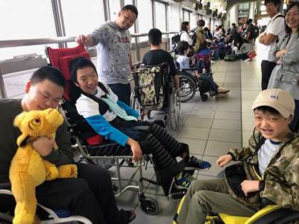 楽しかったね,とおしゃべりしながら新幹線を待っています。