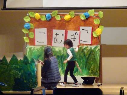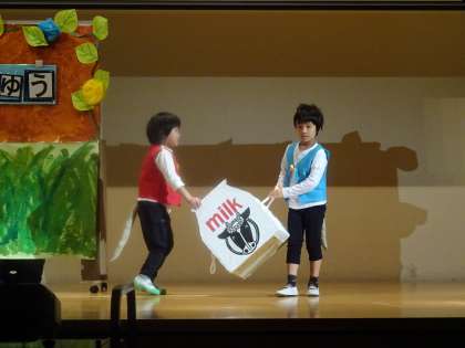 小学部1年生は「森のレストランへようこそ〜パンケーキをお届けします〜」を発表しました。初めてのステージで緊張しながらも,みんなで力を合わせ一生懸命頑張りました。