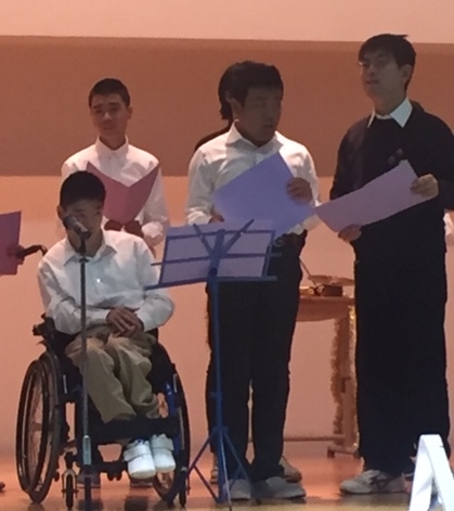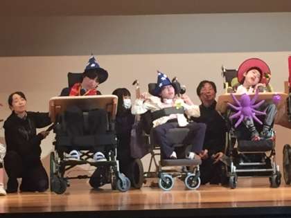 高等部ライフ リズム&メロディ・音楽は「ミュージック☆ワンダーランド」を発表しました。なつかしい名曲やいろいろな楽器を使っての演奏など,みんなで力を合わせて披露しました。