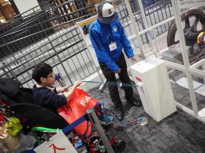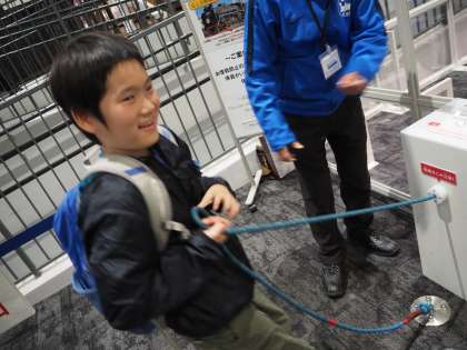 電車の車輪を引っ張っています!重いけど,よく転がる!