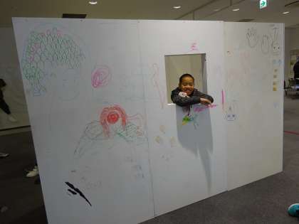 Kotoホールに到着すると,「すごい!」「先生!もう描いていい?」とペンを取出し,早速活動に取り掛かりました。