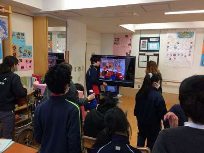午前中は,高等部のみなさんと一緒に学習をおこないました。ヒーバー先生から,クリスマスに関する食べ物や曲の紹介がありました。みんなでクリスマスソングを歌って,踊って,楽しく過ごしました♪