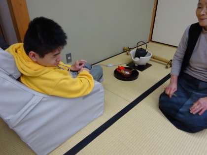 今年度より参加している生徒は,菓子の取り方やお茶のいただき方等の基本的な作法をおさらいしました。