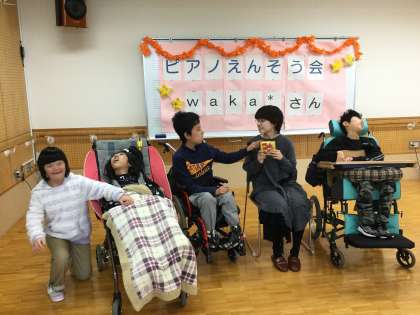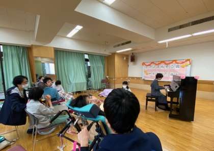 2月5日に中学部の総合的な学習の時間「地域との交流」ユニットで,ピアニストのwaka*さんをお招きして,ピアノ演奏会を行いました。映画やミュージカルの曲を中心に約8曲を演奏していただき,生徒たちは曲に合わせて手拍子をしたり,身体を揺らしたり,じっと聞き入ったりとそれぞれ演奏を楽しむことができました。