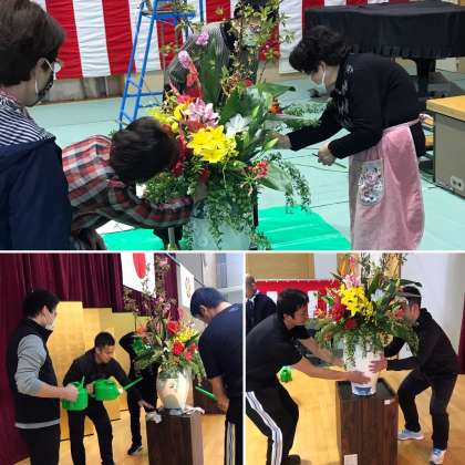 小学部17名,中学部15名,高等部37名の児童生徒がそれぞれのステージで北総合での第一歩を踏み出します。成逸地域女性会のみなさまがその喜ばしい節目に花を添えてくださり,舞台はとても華やかになりました。本当にありがとうございました。