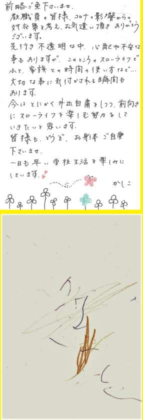 みなさんからいただいたメッセージを紹介します。各ご家庭で工夫して過ごしてくださっていることがよく伝わってきます。