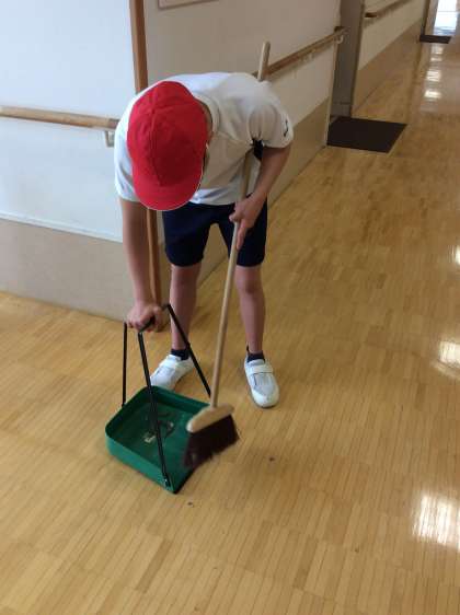 中学部3年生の清掃活動の様子です。自分にあった掃除道具を選んで,自分たちの教室のある4階の廊下を清掃しました。