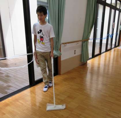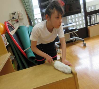 中学部1年生は,4階のオープン教室の清掃に取り組みました。ロッカーを移動させて,すみからすみまでほこりを集めました。教室はもちろん,気持ちもすっきりします。