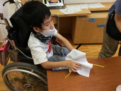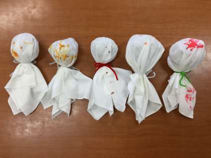 すっきりしない天気が続く中,小学部4年生のみんなで「てるてる坊主」を作りました。布の中に新聞紙を入れて,上手にねじっています。最後は顔を描いて完成!かわいらしいてるてる坊主が完成しました。あーした はれーる かなー♪