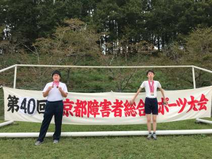 10/4(日)丹波自然公園で第40回全京都障害者総合スポーツ大会フライングディスク大会の部が行われ,本校からは高等部の生徒2名が参加しました。