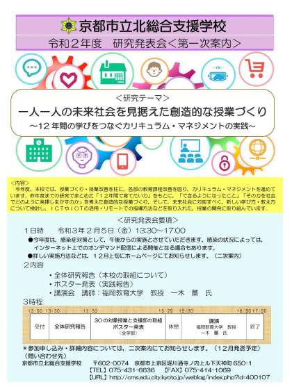 令和2年度研究発表会を令和3年2月5日(金)に実施いたします。つきましては,皆様より多くのご意見,ご示唆をいただきたく,一次案内を公開いたします。
