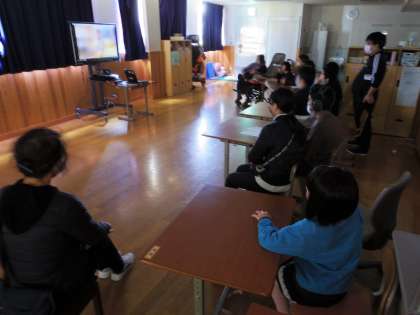 あきぞらフェスタ2020の2日目は,中学部の発表(映像・舞台)が中心でした。中学部生徒は,それぞれの発表を各教室で事前収録映像やリモート中継で鑑賞しました。映像で流れる音楽に合わせて手拍子をしたり,「すごーい!」!と歓声があげたりと,映像を介してではありますが,同じ中学部の仲間の頑張りを見合うことができました。