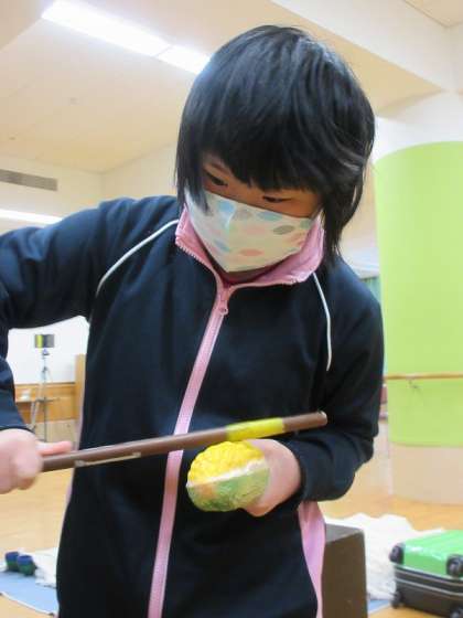 持ってきていただいた楽器の中でも特に目立ったのが,塩ビパイプで作った楽器でした。穴をサンダルで叩くと何とも言えない音が出ます。完成品もありましたが,今日は,パーツを好きな形に組み立てて,音の変化や,つながれた塩ビパイプの造形的な美しさも楽しみました。