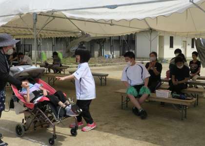 いよいよ明日からあおぞらフェスタ2021が始まります。中学部の生徒たちは,これまでの練習のおかげで,自信を持ってそれぞれの役割や競技に参加できています。今日は本番前の最後の練習です。声高らかに開会宣言,選手宣誓,諸注意をする声がグラウンドに響きます。リレーやバラエティ走では,「がんばれー!」「いいぞー!」という声に背を押され,一生懸命走る姿が見られました。学年のテントに戻ると,「おかえり,頑張ったね!」「お疲れ様!」と健闘を称えあう姿がありました。この調子で本番もめいっぱい楽しんで頑張ろう!