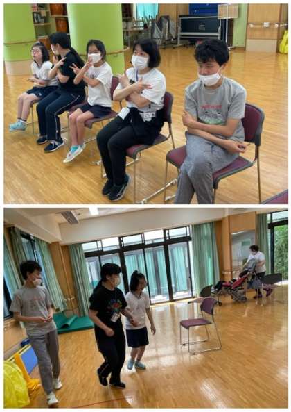 5月のK-POP(きたぽっぷ)では,「運動会」をテーマにして「天国と地獄」「ラデツキー行進曲」など,運動会ならではの楽曲や,「パプリカ」の甲子園行進曲バージョンなどを鑑賞しています。また,手話歌で校歌を歌ったり,曲調によって歩くスピードを変えたり,拍手したり,ジャンプしたり,全身でリズムやメロディを感じたりしながら体を動かしています。活動が楽しくて,曲が終わっても「もう一回!」「もう一回!」と何度もやりたい気持ちを伝える生徒の姿が見られました。あおフェス後の授業では,キラキライルミネーションを見ながらオルゴールメロディを聴き,みんなでたっぷりリラックス。体力が回復するような癒しになりました。
