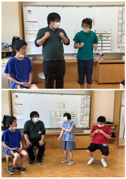 中学部3年生は,修学旅行に向けて,1回目の事前学習をしました。いつ,誰と,どこへ行くのか,生徒たちは真剣な顔で説明を聞いていました。画面に映る動物たちに「かわいい!」と言ったり,新幹線やバスの写真を見て,「新幹線だ!」「バスだ!」と楽しみな声をあげたりしていました。その後はクラスに分かれて頑張りたいことや楽しみなことを相談しました。「自分で髪や身体を洗って,身の周りのことをします」「みんなと一緒に頑張ります」「友だちと新幹線の模型に乗りたいです」と,目をキラキラさせて発表していました。