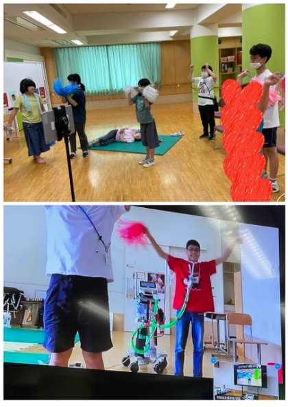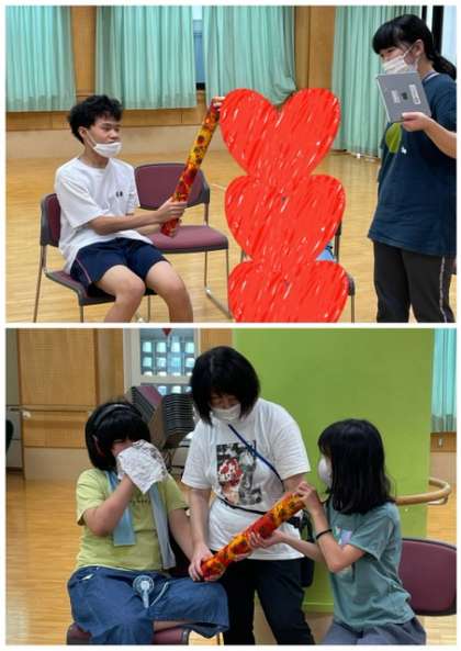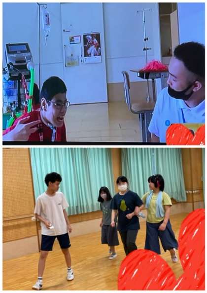 K-POPでは,「海の声」という曲を鑑賞しました。一度曲を聴いて,海の波音や三線の音をしっかり聞き取った後,オーシャンドラムやレインスティックを使って波の音を再現しました。「ザー,ザザーン」という音をじっくり聞いて,まるで砂浜で海を眺めている気分になりました。三線の音に合わせて「エア三線」を演奏して楽しむ生徒もいました。「REDエール」での表現活動では,前回より身体を大きく動かす生徒の姿が見られました。準備や片付けも生徒たちが主体的に活動し,充実した時間になりました。