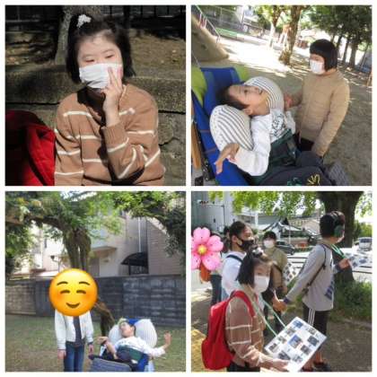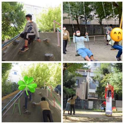 今年度初めての校外学習で紫野宮西公園へいきました。これまでの学習を思い出し,横断歩道の手前で止まって車が来ていないか確認したり,公共の場でのマナーを守ったりしました。公園についてからは,感染症対策の手洗いと手指消毒をしっかり行った後,遊具で遊んだり,植物を観察したりしました。学校に帰ってからも「楽しかった!」「またみんなでおでかけしたい!」「次はどこにいくの?」と盛り上がりました☆
