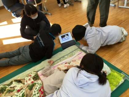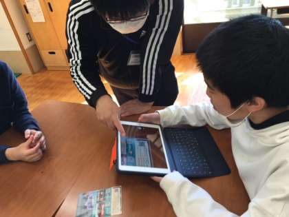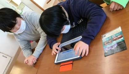 中学部3年生は,iPadを使ってICT学習に取り組みました。iPadで学校のホームページを表示してみんなで記事を読んだり,画像を見たりしました。また,金曜日に見た「サーカスの灯」のチラシにあるQRコードをカメラで読み取り,ラストラーダカンパニーのWebサイトにアクセスをしました。生徒たちは,QRコードからWebサイトが開くのを見て「うわっ」「すごい!」とびっくりしたり,あらすじ動画を見て「楽しかったなあ」「また見たいなあ」と思い出を振り返ったりしていました。