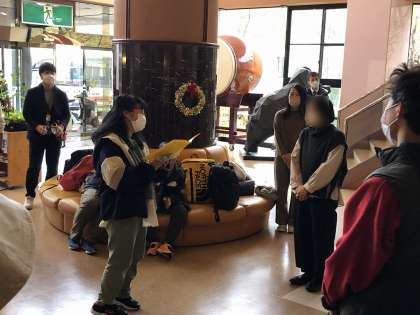 退館式の様子です。お礼の挨拶をしました。修学旅行の間,お世話になりました。どうもありがとうございました。