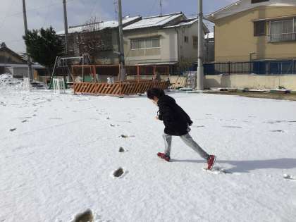昨日からの積雪で学校には雪が沢山積もりました。小学部3年生は朝から皆で運動場に出て雪遊びをしました。一面真っ白の運動場に大喜びの子どもたちでした。思い切り走り回ったり,おそるおそる雪に触れてみたり,雪だるまを作ったり思い思いに雪で遊びました。