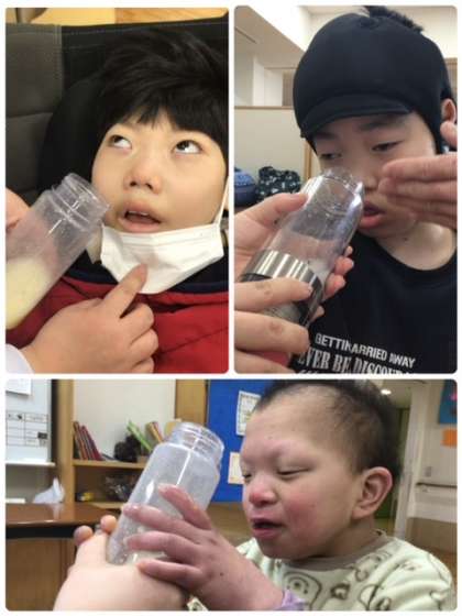 新年最初の5senses+1では,「日本」をテーマにして,「ひとつとや〜」のかぞえうたを鑑賞しました。昔ながらのかぞえうたを初めて聞いたはずの生徒たちでしたが,TV画面をじっと見つめて聴き入っていました。においの活動では,「白みそ」「しょうゆ」「酒粕」のにおいを感じました。今日の入浴剤はあんずの香りの「福福湯」です。足湯の活動では「待ってました〜」とにっこりしたり,じんわり温かいお湯を感じて身体の力を抜いたり,いい香りのホットタオルにうっとりしたりする姿が見られました。