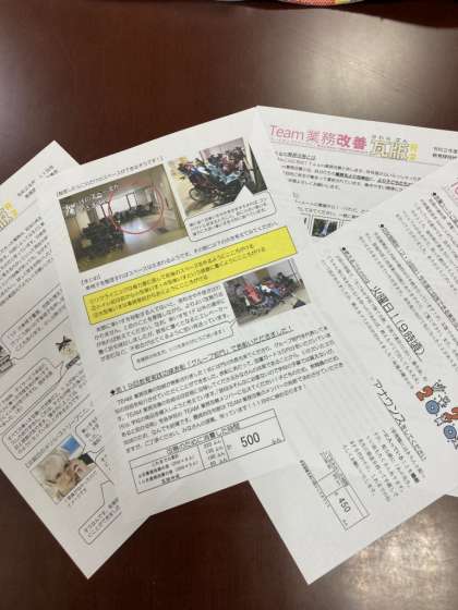 取組の内容は,教職員の負担軽減と業務内容の充実を目的として,目安箱の設置や業務改善ミーティングの実施,瓦版の発行などをとおして,教職員自らが,意見の調査・集約及びそれを踏まえた改善に取り組み,ボトムアップの働き方改革を推進しようというものです。