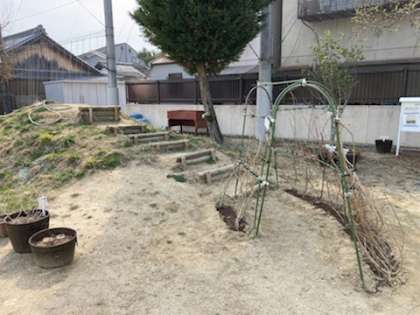 先日,成逸かがやき広場に,高さのあるユニバーサル畑に続いて,レンギョウのトンネルが完成しました。これで,ひとまずは終了です。花や緑でいっぱいになるのが楽しみです。今年度は延期になりましたが,来年度は,ここで完成披露式ができるといいなと思います。