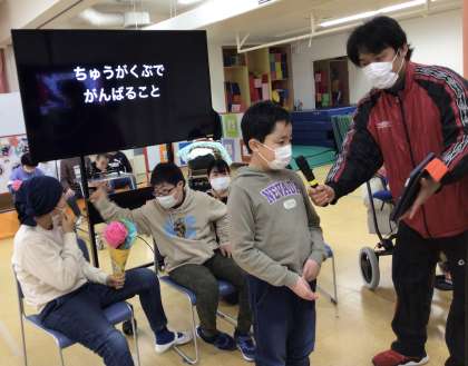 6年生も,小学部でがんばったことや,中学部でがんばることを皆の前で発表しました。