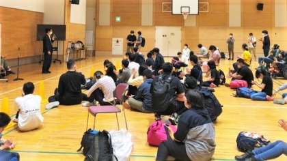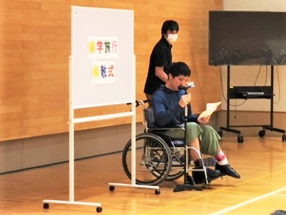 無事に学校に帰ってきました。体育館で解散式です。校長先生や生徒代表が挨拶をし,旅を締めくくりました。