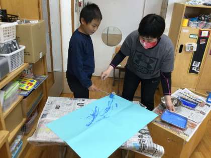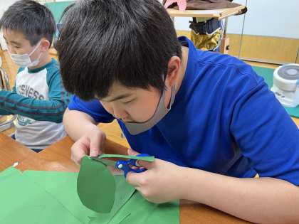 クラスごとにテーマを決め「季節の飾り」をつくりました。色や画材を選んだり,作り方を工夫したりする中で,素敵な作品ができました。