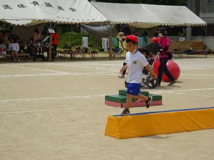 それぞれのコースで,ボールをころがしたり,シュートしたり,ハードルをまたいだり,平均台を渡ったりしてゴールを目指しました。