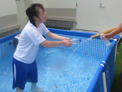 今週は雨予報ですが、今日は絶好のお天気で、冷たくて気持ち良い水にたくさん触れることができました。笑顔いっぱいの楽しい時間を過ごせました。