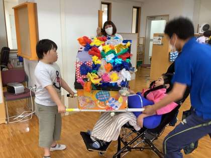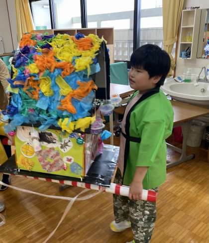 色とりどりの法被を着て,カラフルな神輿を担ぐと一気に雰囲気が出ます