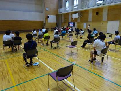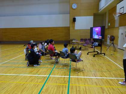 次は、小学部から、夏の集会で「お化け屋敷」や「魚つり」などを楽しんだことの報告が、動画でありました。