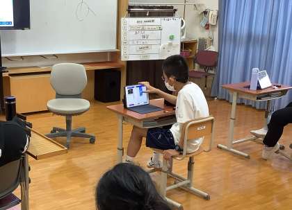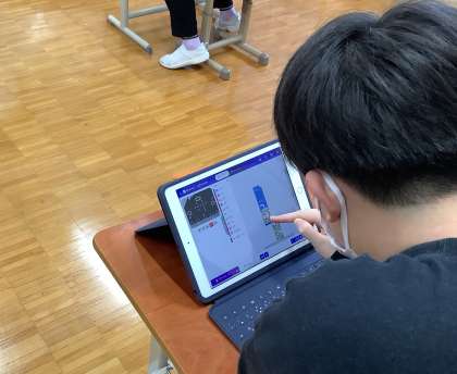 導入では、自分の名前を機械にプログラミングし、LEDで発光させました。プログラムの方法やICT機器の操作など、興味津々で取り組んでいました。