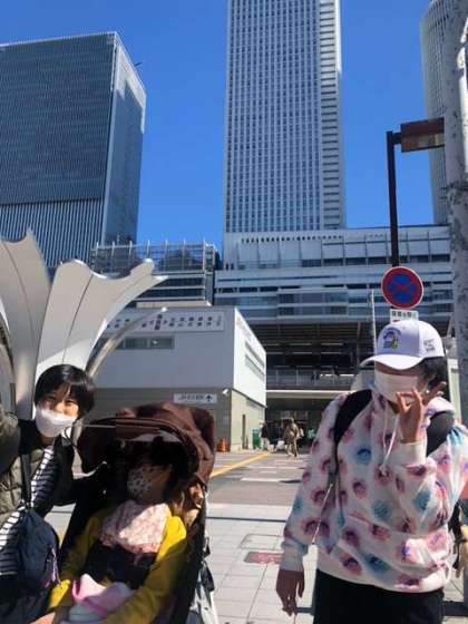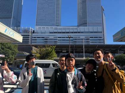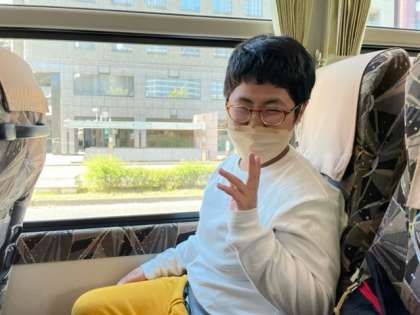 2台のバスと福祉タクシーに分かれて乗車しています。