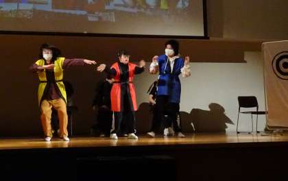 修学旅行をテーマに、思い出を振り返りながら様々なキャラクターで発表に取り組みました。修学旅行で行った名古屋の魅力が散りばめられた素晴らしい発表でした。