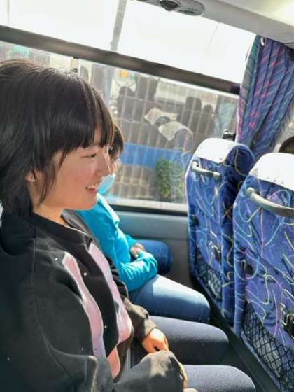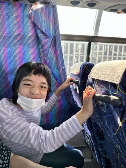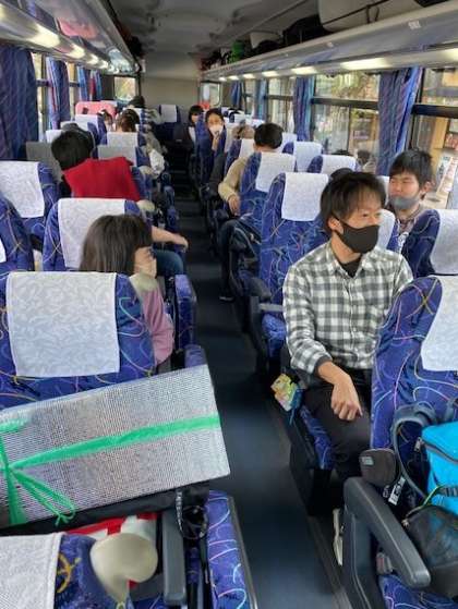 観光バス組の車中の様子です。ワクワクドキドキが止まりません。