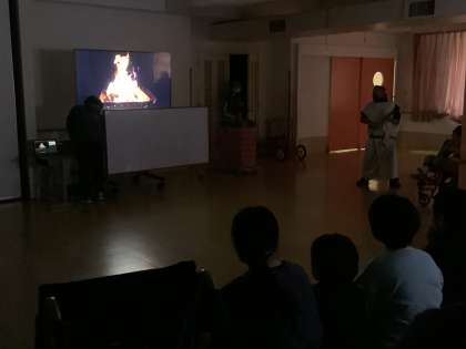 参加できなかったお友達もリモートで参加♪5年生全員そろって楽しみました!火の神の登場にみんな大喜び!!スイッチを押して矢を飛ばし無事点火することができました!