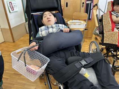 靴下やキーホルダー、お菓子の入れ物などの修学旅行先で実際に買えるお土産を使って、学習に取り組みました。陳列された商品を選択したり、お財布の中からお金を出して支払ったりする姿が見られました。買った商品をみて笑顔になる子どもたちでした!