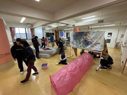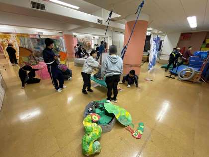 15日(水)に高等部「北ギャラリー」ユニットと小学部3年生が「はらぺこあおむしの世界」をテーマに交流をしました。高等部「北ギャラリー」ユニットが、この日のために様々な製作・準備を進めてきました。当日は高等部生徒がセッティングや安全確認を行い、交流スタート!高等部生徒も小学部のみんなと一緒に楽しそうに遊んだり、写真を撮ったりして楽しみました。とっても素敵な交流の時間となりました☆