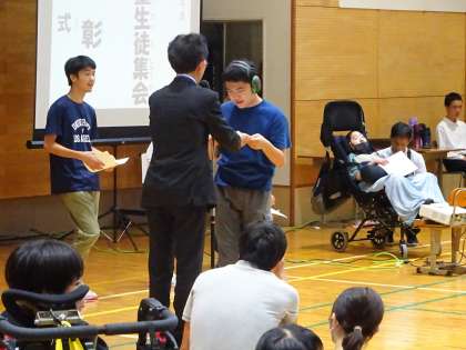 本日、後期始業式を行いました。校長先生からは「季節は実りの秋を迎えました。後期はこれまでの取組の成果を実らせてください。また、朝晩とても涼しくなってきましたので、体調を崩さないように過ごしましょう。」といったお話がありました。その後、陸上大会や京都市児童生徒作品展の表彰式があり、子どもたちは校長先生からメダルや賞状を受け取り、友達からは大きな拍手が送られました。