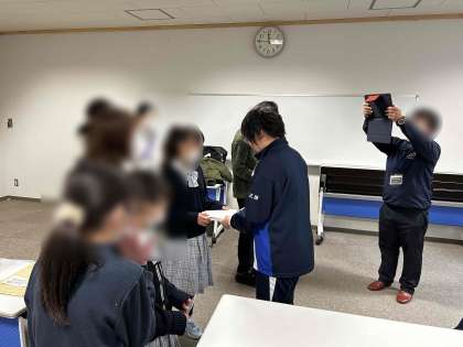 水曜市のあと本校のクラフトデザイン班と府立盲学校 中学部さんと交流しました。水曜市の感想を聞いたり、盲学校さんからは、使わなくなった点字用紙をもらい、クラフトデザイン班からはリメイクした「ミニノート」をプレゼントしました。これからもこの繋がりを大切にしていきたいです♪